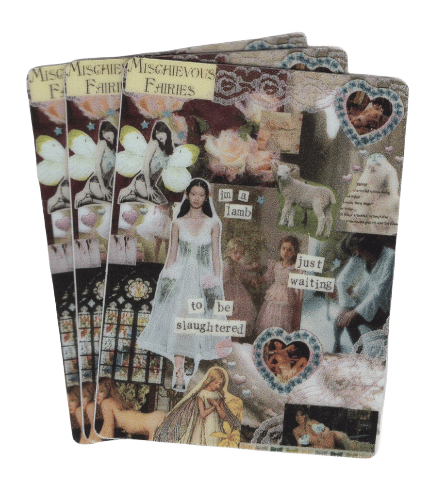 lamb just waiting to be slaughtered collage sticker, waterproof, 2 inches